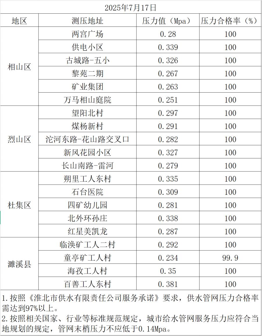 2025年7月17日水壓抽測公示
